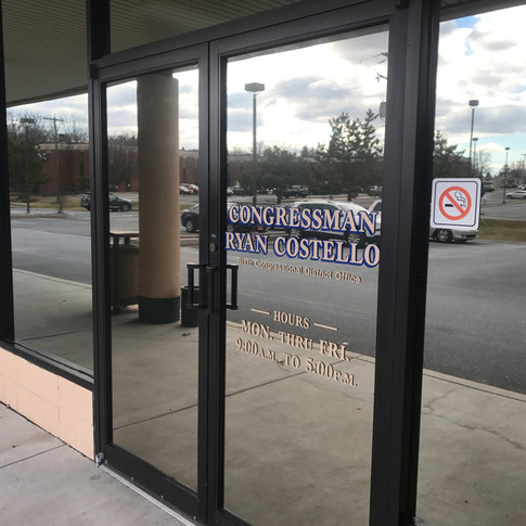 We were contacted by Congressman Costello's office staff at their Reading location, looking for a solution to cure their glare and excessive heat issue that they were experiencing inside their front office. They said that the problem had risen to the level recently where they were having to wear sunglasses while working on their computers because the clear glass, and the rising sun in that direction, were a perfect storm and reeking havoc on their comfort!